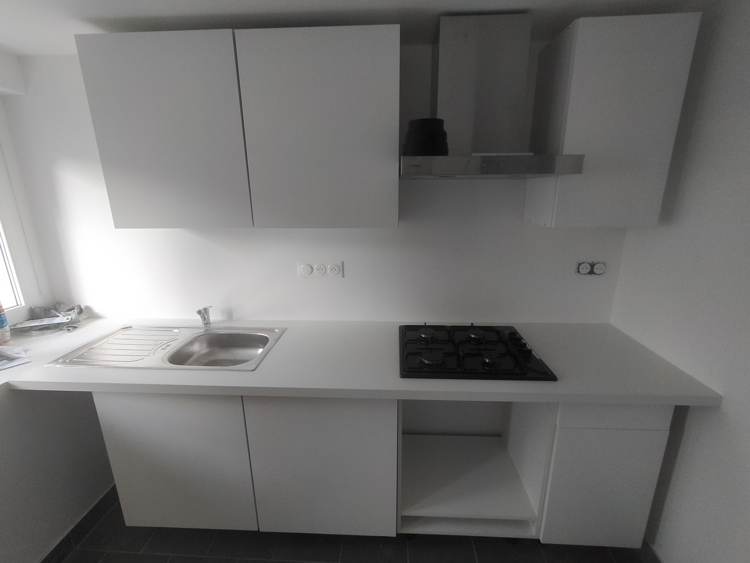 *Au RDC :  Une cuisine équipée (plaque de cuisson et hotte), un séjour, des toilettes, un dégagement
